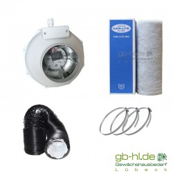 Lieferumfang1 x Garden HighPro InLine 125 - 190 m³/h1 x CAN-LITE 150 - 185 m³/h - 125 mm1 m COMBIDEC® Lüftungsschlauch Ø 125 mm1 x Universal Schlauchschelle bis 165 mm1 x Verbindungsmanschette 125 mm1 x Netzkabel 150 cm 2 x 0,75 mm