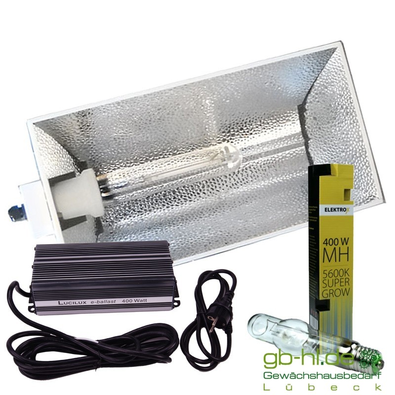 Diese Metallhalogen-Hochdrucklampe hat eine Lichtstärke von 32000 lm mit einer Lichteffizienz von 80 lm / W. Der Vorteil gegenüber LED-Technik und Energiesparleuchten besteht in der größeren Ausleuchtungsfläche und -tiefe. Mit seiner Farbtemperatur von 5600 K, der tageslichtweißen Lichtfarbe und dem weiß-blauen Farbspektrum fördert die Elektrox SUPER GROW 400 W MH besonders die Wachstumsphase von Pflanzen.