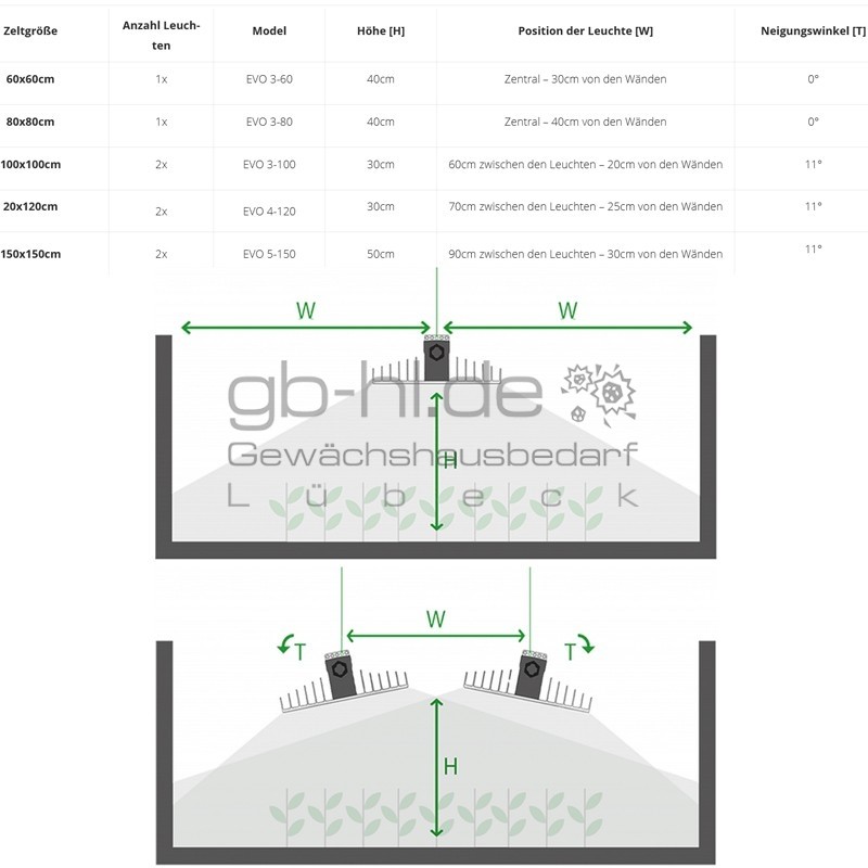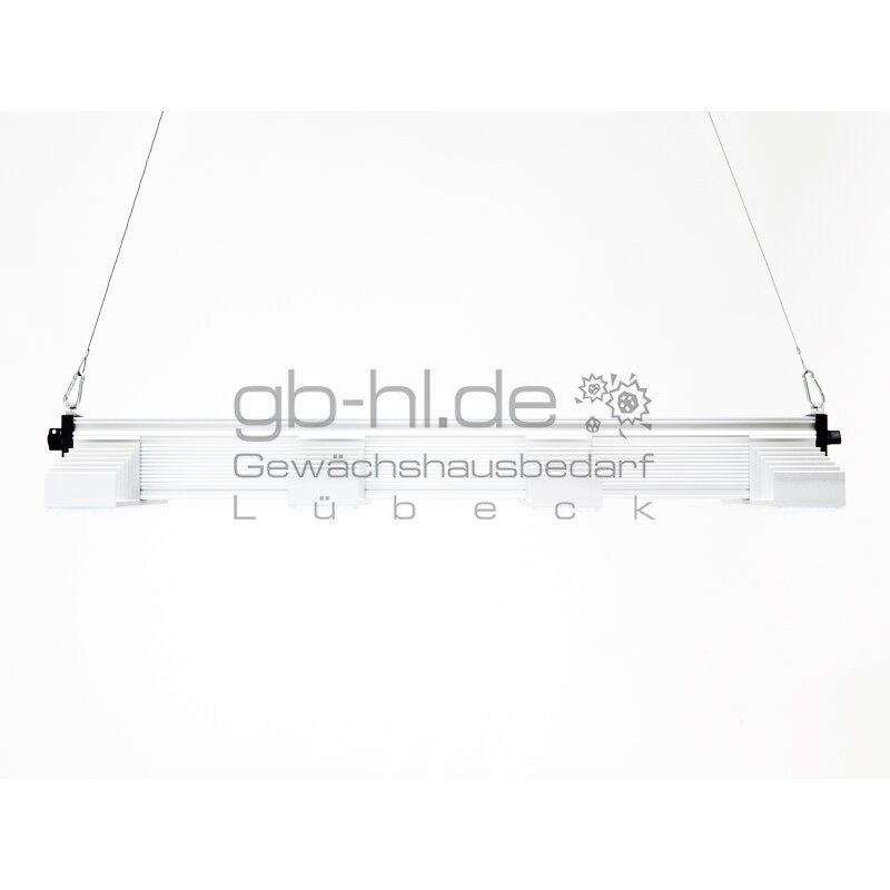 Für all jene, die das Extreme aus Ihrer Growbox holen möchten und auch vor der Verwendung von CO₂ nicht zurückschrecken, ist die EVO 4-100 das Maß der Dinge. Zwei Leuchten je Quadratmeter erzeugen höchste Beleuchtungsintensitäten, die an das Maximum dessen gehen, was Pflanzen in der Blüte mit zusätzlichem CO₂ verarbeiten können. Für Ihre vegetativen Pflanzen empfehlen wir Ihnen entweder nur eine Leuchte zu nutzen oder, um die Homogenität zu erhalten, 2 Leuchten mit unseren Dimmer zu verwenden. 265 W und 725 µmol/s ergeben eine wirklich starke Leuchte, die nichts für Anfänger ist.
